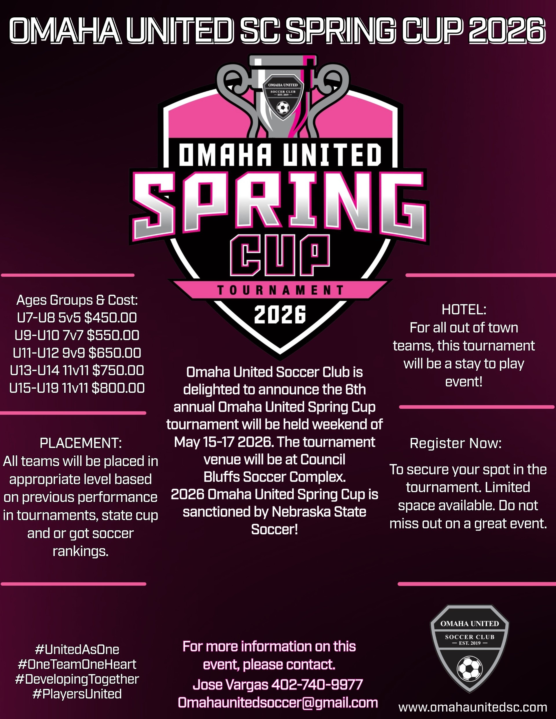 OMAHA UNITED SPRING CUP 2026May 15-17, 2026Council Bluffs Recreation Complex